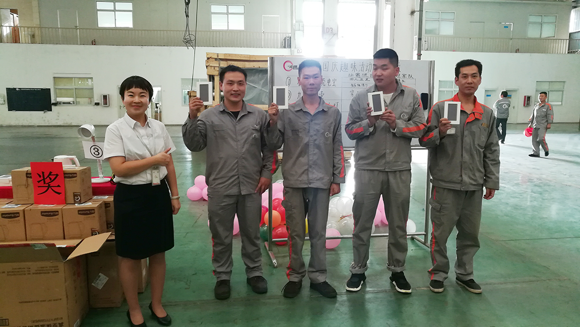 設備制造廠也緊跟大家步伐,組織全體員工參加:集體跳大繩、幸運大抽獎等趣味活動,來迎接國慶假期的到來,豐富職工的業余生活,讓職工度過一個快樂的國慶假期。
