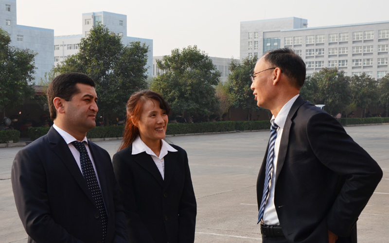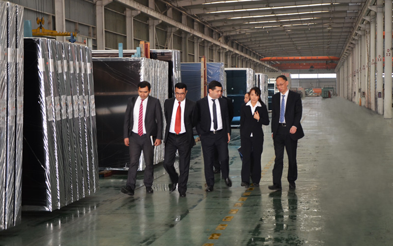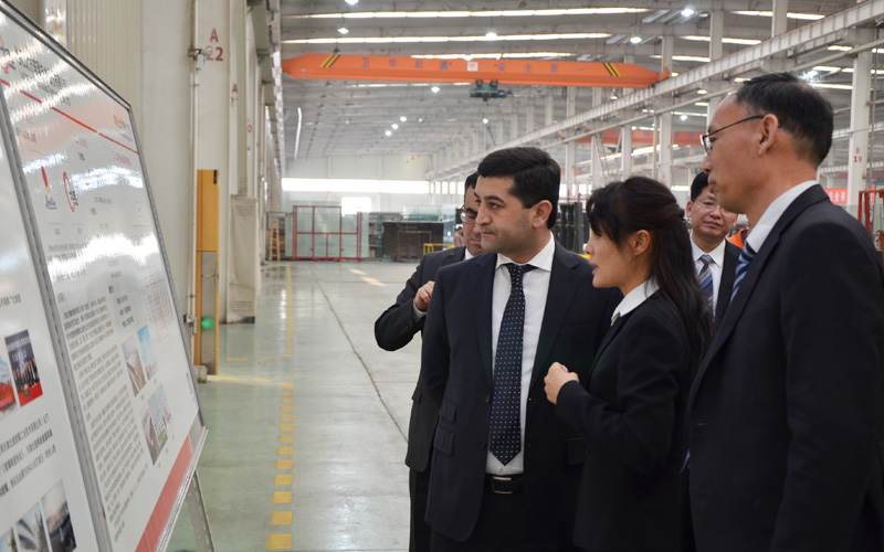 2017年11月8日,烏茲別克斯坦新任駐華大使巴赫季約爾·賽義多夫一行三人在洛陽市自貿區外事辦工作人員陪同下,蒞臨北玻股份洛陽基地參觀學習、交流技術經驗,為提升本國的玻璃深加工技術實力打下基礎。