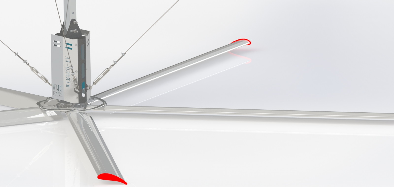 洛陽北玻臺信項目負責人樊勇介紹,這與工業大風扇獨特的設計理念有關?!斑@款產品是我們引進比利時WMC公司技術,雙方合作研發的。獨特的機翼形扇葉可將運行時阻力減至最小,將電能以最高效率轉化為空氣動能,更容易實現立體式送風?!狈抡f,工業大風扇將氣流豎直推向地面,然后在地面上形成1米至3米高的風墻,使得覆蓋面積大大增加,從而形成酷似大自然的立體送風系統。